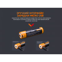 Опис акумулятора 18650 Fenix (3400 mAh) micro usb заряджання: