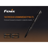 При належній вправності, надійна тактична ручка Fenix T5 зможе вас виручити як у повсякденному житті, так і в екстремальній ситуації. Вона має дуже міцний корпус з анодованого алюмінію марки 6061-T6 і оснащена склобою завдяки чому, за допомогою T6 можна розбити скло і нанести удар.