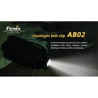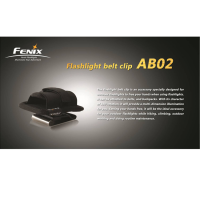 Оригінальна кліпса-тримач для ліхтарів AB02 від компанії Fenix. Модель AB02 являє собою широку кліпсу з нержавіючої сталі, яку слід кріпити на ремені (з укріпленим на ній чохлом із синтетичної тканини). На бічній поверхні чохла розташований ремінь на застібці «велкро» (іншими словами, «липучка»), який дозволяє надійно зафіксувати ліхтар всередині.