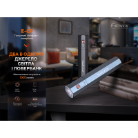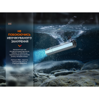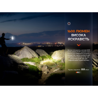 Примітка: показники світіння моделі ґрунтуються на результатах, отриманих фірмою Fenix під час лабораторних дослідів із застосуванням літій-іонного акумулятора ємністю 5000mAh при температурі 21±3°C та вологості 50% - 80%. Реальні параметри роботи ліхтаря можуть відрізнятися залежно від різних умов зовнішнього середовища та акумулятора, що застосовується.