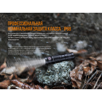 Корпус ліхтаря зробили з міцного і надійного алюмінію A6061-T6. Поверхня оброблена преміальним жорстким анодуванням, стійким до абразивів. Стандарт захисту від пилу і води: IP68. Модель легко переносить падіння з висоти до одного метра. Розміри складають 79*19,3*18,4 вага дорівнює 45 грамам.