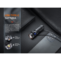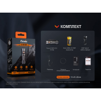 Комплектація: модель ліхтаря Fenix E18R V2.0, літій-іонний акумулятор Fenix ARB-L16-700P, кабель для заряджання USB Type-C, ремінець, запасне кільце ущільнювача, листівка, інструкція до застосування , талон гарантії.