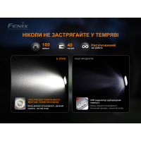 Дані характеристики засновані на результатах дослідів, які компанія Fenix провела із застосуванням Ni-MH 1300mAh акумулятора при температурі повітря 21 +- 3 градуси і вологості 50% -80%. Реальні параметри світіння моделі можуть відрізнятися від наведених в залежності від зовнішній умов і використовуваного акумулятора.