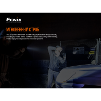 Запуск миттєвого режиму строба: з включеного стану Натисніть і потримайте будь-який перемикач половину секунди, щоб активувати режим строба. Щоб повернутися до стандартного освітлення, відпустіть кнопку. Важливо: використання освітлення в режимі стробоскопа може викликати судоми у людей, які схильні до фоточутливої епілепсії. Для того, щоб заблокувати модель: з вимкненого положення одночасно Натисніть і потримайте дві кнопки протягом п“яти секунд. Модель двічі блимає, щоб підтвердити те, що вона заблокована. Якщо знадобиться розблокувати, Натисніть і потримайте обидві кнопки протягом секунди. Після цього ви зможете включити ліхтар. Він запуститься в тому режимі, який застосовувався до моменту виключення.