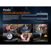 * Зазначені показники роботи ліхтаря вдалося отримати в ході лабораторних випробувань. Де були такі умови: застосовувався один літій-іонний акумулятор Fenix ARB-L 18 - 3000P, температура становила 21 + - 3 градуси Цельсія, а вологість була близько 50% -80%. Фактичні показники роботи ліхтаря можуть відрізнятися в залежності від різних умов навколишнього середовища і використовуваного акумулятора.