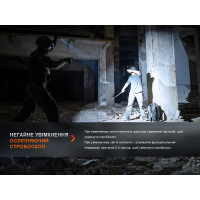 Функціонал Fenix PD36R Pro представлений 6 режимами роботи: 5 основних режимів із постійним світлом для освітлення великого простору або підсвічування віддалених предметів на великих відстанях, а також 1 миготливий режим стробоскоп, який дозволяє засліпити супротивника або подати яскраві сигнали оточуючим.