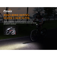 Комплектація Ліхтар, кріплення на велосипед, батарейка Fenix ARB-L18-2600 18650, кабель USB Type C, ущільнююче кільце, монтажні прокладки, інструкція, гарантійний талон