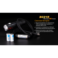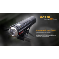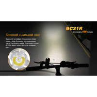 Модель Fenix BC21R являє собою велофару з широким набором функцій для зручного використання в будь-яких умовах і при будь-якій погоді. Вона працює з світлодіодом нейтрально білого кольору XM-L2 T6, який випускає найбільший виробник напівпровідникових джерел світла — компанія Cree. Цей діод дозволяє використовувати велофарі п“ять режимів освітлення, в число яких входити і миготливий режим Flash. Найбільша яскравість з доступних варіантів — це 880 люмен. Найбільша дистанція освітлення — 125 м. Також доступні режими з яскравістю 380, 200, 100 люмен. А в режимі Flash чергуються спалаху яскравістю 380 і 100 люмен.