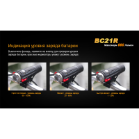 Щоб власник велофонаря Fenix BC21R в будь-який момент міг контролювати залишок заряду акумулятора, що в дану модель вбудований індикатор. Для його включення слід один раз натиснути на кнопку виключеного ліхтаря. Якщо бічні червоні діоди будуть світитися — заряду залишилося понад 60%. Якщо вони будуть блимати — від 20% до 60%. Ну а якщо діоди будуть мигати швидко, то залишок заряду — нижче 20%. Про необхідність замінити майже розряджений акумулятор, нагадає і ще одна функція. Якщо ліхтар у цею годину включень, то його кнопка почне підсвічено червоним як тільки заряду залишиться менше 20%. Важливо, що кнопка на корпусі всього одна, а тому управління велофарой інтуїтивно зрозуміло. А також, що Fenix BC21R є ятовує режим, в якому велофара працювала безпосередньо перед відключенням.