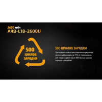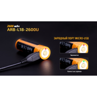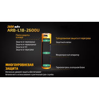 Цей акумулятор має великий потенціал працездатності, адже заряджати його знову можна більше 500 разів. За цей час, елемент живлення втратить не більше чверті початкової ємності. Особливо цікаво в даній моделі реалізована функція зарядки. Елемент живлення можна використовувати в комплекті з зарядним пристроєм, сумісним з літій-іонними акумуляторами, а крім того-приєднувати його відразу ж до кабелю USB. Спеціальний роз“єм для цього вже вбудований в корпус акумулятора. Крім того, в корпус (з боку анода) вбудований захист від можливого короткого замикання. Ще три елементи захисту оберігають ARB-L18-2600U від перегрівання.