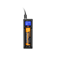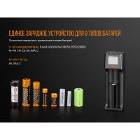 Модель Fenix ARE-D1 – це сучасне зарядний пристрій з 1 слотом для акумулятора. Воно підходить практично для будь-яких умов використання та сумісно з елементами живлення 9 різних типорозмірів. Серед літій-іонних акумуляторів підходять формати 10440, пальчикові 14500, 16340, популярні для ліхтарів 18650, 21700, 26650. Нікель-металгідридні або менш поширені нікель-кадмієві – це формати ААА, АА, С. Слот зарядного пристрою забезпечений рухомий притискної частиною, яка забезпечує щільну фіксацію кожному з перерахованих акумуляторів.