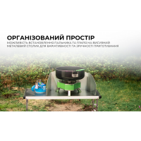Тумба BRS-Z12 складається з двох зон: основної тумби із встановленою обробною дошкою та висувного металевого столика. На тумбі зручно різати продукти харчування, а на стіл можна встановити пальник із вітрозахисним екраном або портативний гриль.