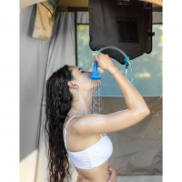 Розміри намету у встановленому положенні складають 140 х 140 х 230 сантиметрів. За бажанням користувача навіс, що замінює стелю, можна прибрати для швидкого випаровування пари під час приймання гарячого душу.