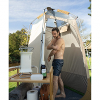 З намету Naturehike NH21ZP005 можна зробити своєрідну душову кабіну або встановити у ньому туалет. Модель пошита з поліестеру 210T — щільного та зносостійкого матеріалу синтетичного походження, який не деформується та не рветься при багаторазовому використанні. На поверхні матеріалу присутнє тонке поліуретанове покриття, яке відштовхує краплі вологи, відбиває УФ промені і є повністю вітронепроникним, захищаючи користувача всередині від холодних протягів.