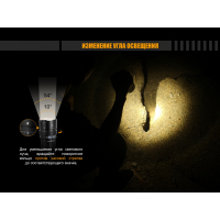 В даному ліхтарі працює відразу 3 потужних і дуже довговічних діод Cree XHP35 HI. Кожен з таких джерел світла працює близько 50 тисяч годин, даючи білий світ нейтрального відтінку. Це найбільш близьке до природного освітлення, яке дозволяє дуже точно оцінювати як відстань, так і обсяг різних предметів. Невід“ємною частиною оптичної системи ліхтаря є і TIR лінзи, які беруть участь в фокусування променя. В цілому ж, фокусна відстань в даній моделі не є постійним і змінюється на розсуд користувача за допомогою поворотного кільця, поміщеного в головній частині ліхтаря. Ширину променя можна збільшити від 10° (з бічним засвіченням 54°) до 90°. При цьому буде змінюватися і радіус території, яка висвітлюється.