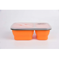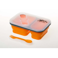 Контейнер TRAMP складний силіконовий 2 від. з кришкою защіпкою 900мл (з ложкою-виделкою), Помаранчевий
