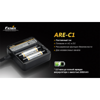 Надійне і просте зарядний пристрій Charger ARE-C1 від компанії Fenix. Fenix Charger ARE-C1 має два незалежних канали, на кожен з яких припадає по 1000 мА зарядного струму. Тому пристрій може заряджати один або два акумулятора.