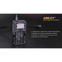 Пристрій Fenix ARE-C1+ створено для зарядки пари елементів живлення одночасно. Воно підходить для великої кількості акумуляторів різного розміру і типу. Так, сумісними є літій-іонні батареї 18650, 26650, 16340, 14500, 10440. Крім того, можлива зарядка нікель-металгідридних, нікель-кадмієвих акумуляторів форматів АА, ААА, С. Причому, завдяки ізольованості каналів один від одного, можна заряджати навіть різні елементи живлення в один час. Деталі щодо процесу зарядки будуть відображені на екрані, який розміщується поруч зі слотами. Дані про кожного з акумуляторів стають доступні після натискання відповідної його осередку кнопки. На екрані відображається акумулятора вольтаж, сила струму та час зарядки. Що стосується часу, то про нього повідомляє зображення акумулятора з тим чи іншим кількістю рисок. Якщо блимає тільки одна, то рівень заряду нижче 20%. Одна світиться і одна миготлива говорять про рівень заряду 20-40%. Поява третин рисочки — 40-60%, четвертої — 60-80%, п“ятої — понад 80%. Коли всі п“ять рисок світяться, а не блимають — акумулятор заряджений на всі 100%. Повний час зарядки залежить від типу і ємності встановленого елемента живлення.