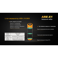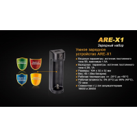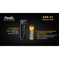 Пристрій для зарядки зроблено з однією коміркою для акумулятора. Воно в змозі працювати з елементами живлення 18650 і 26650. Час їх зарядки безпосередньо залежить від ємності. Fenix ARE-X1 kit працює в двох режимах: звичайна зарядка акумулятора заряджання акумулятора інших пристроїв (таких, як мобільний телефон). Тому користь від даного комплекту зростає вдвічі.